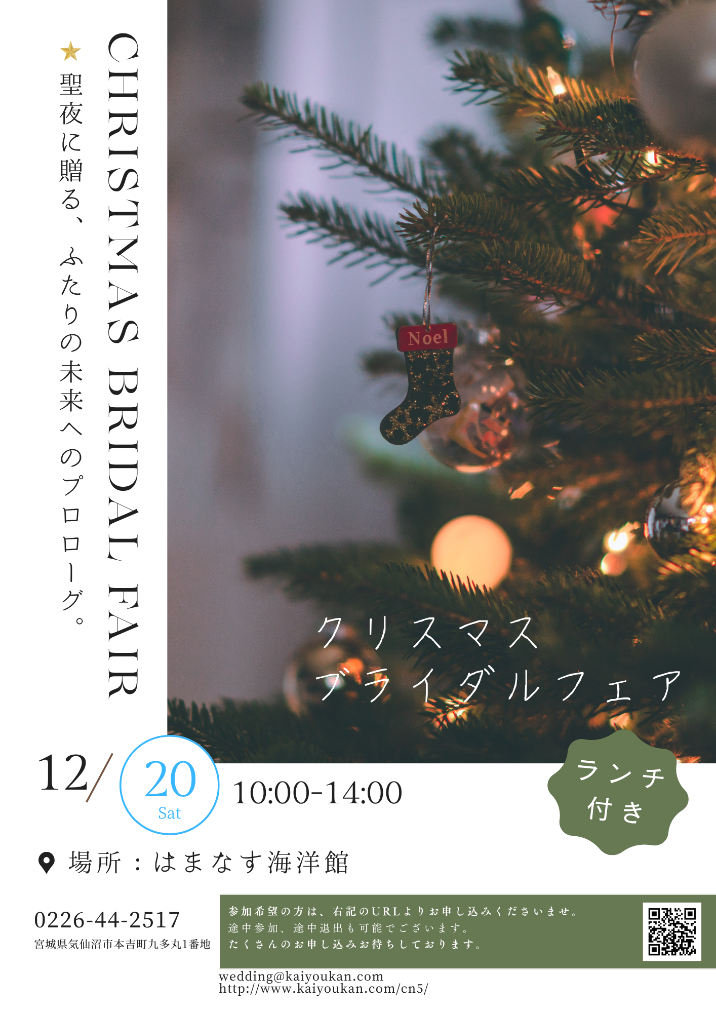 12月1日から12月25日まで期間限定でクリスマスランチ&ディナーのご予約を承ります。